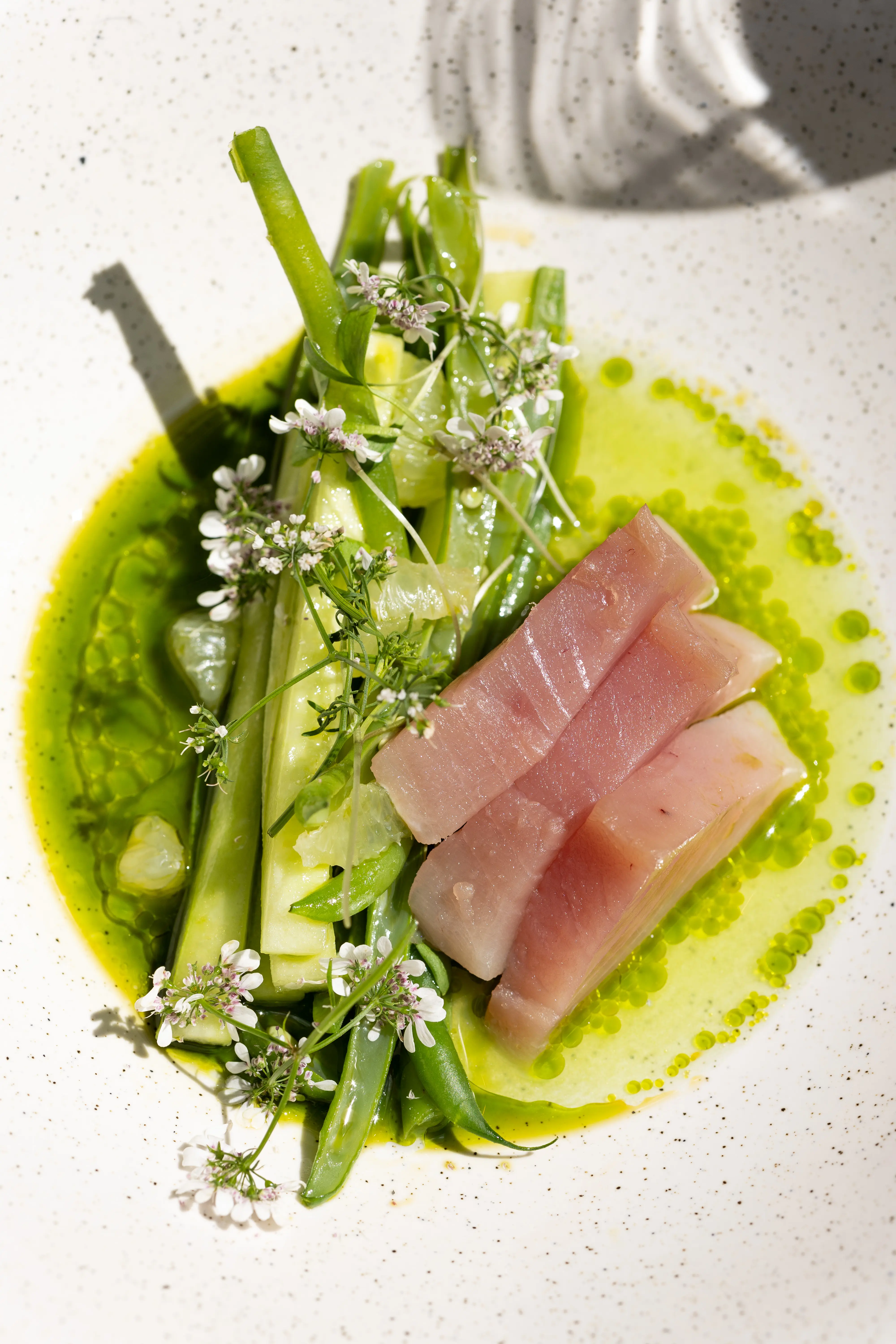Entrez dans notre salle à manger pour un déjeuner d'affaires express ou un moment de détente entre amis le week-end. Notre menu change au fil des saisons, mais nos plats préférés reviennent toujours, des asperges grillées, accompagnées d'ajo blanco et de fleur d'oranger, au filet de porc grillé avec poivrons, raisins secs et câpres, en passant par nos rigatoni alla Nerano, rehaussés par le zeste acidulé de la menthe et la richesse du provolone.